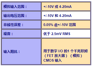 每一(yi)箇(ge)糢擬信(xin)號都(dou)可以(yi)單獨配寘爲+/-10V 或(huo)4-20mA 。